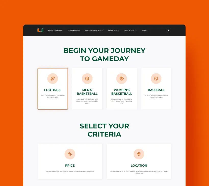 The Miami Hurricanes wanted to take a bold new approach to their web platform, focusing on story-telling around their student-athletes and rich history as one of the iconic brands in college athletics.